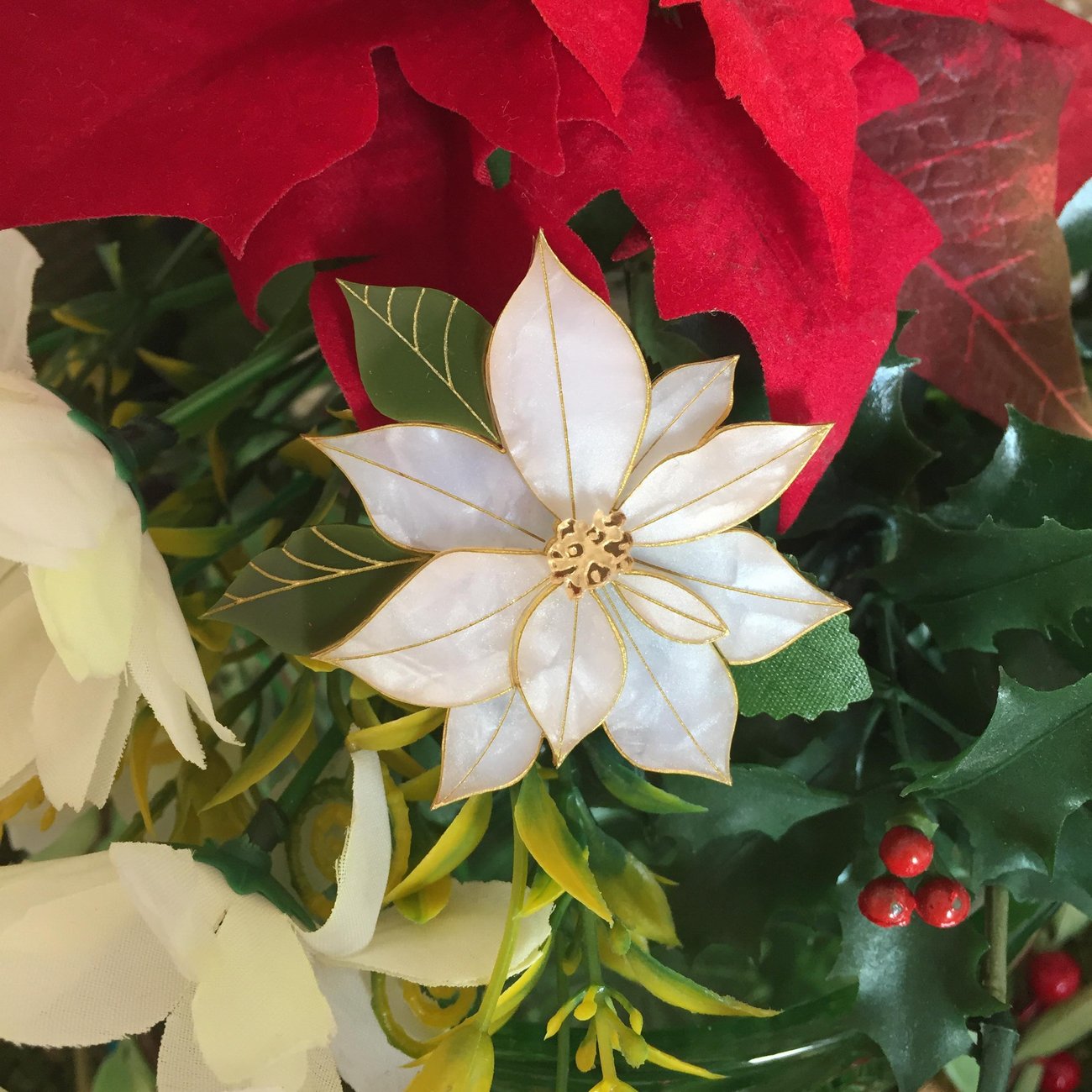 Pepita's Poinsettia Brooch - Original Red