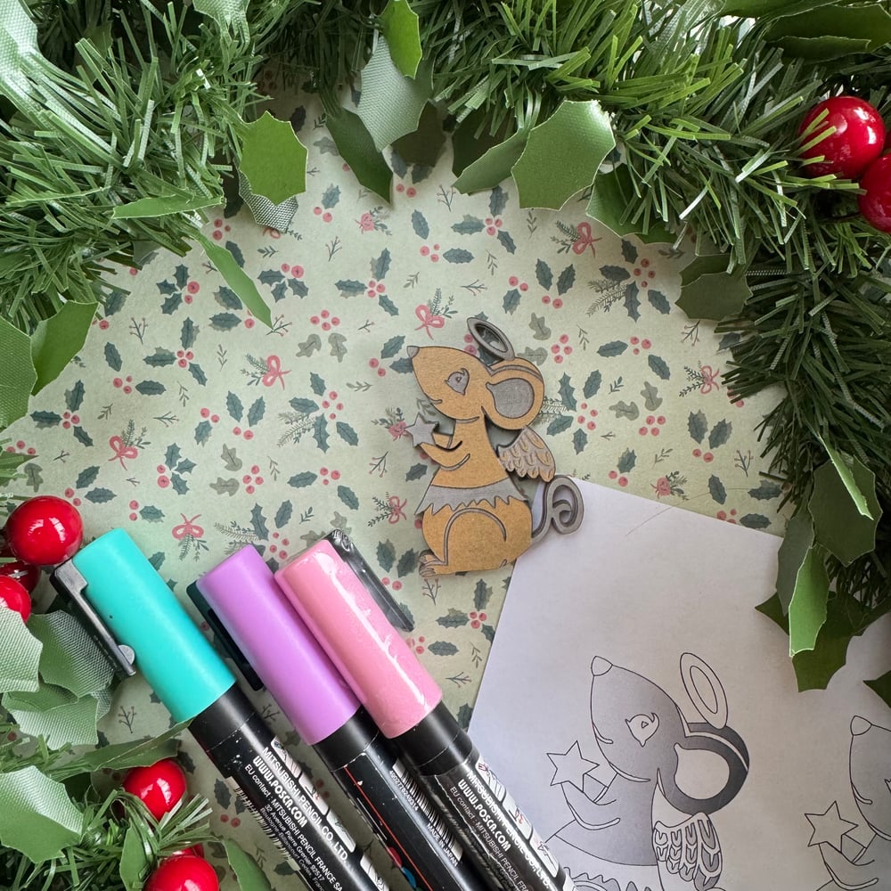 One colouring in sheet with 4 Merry Christmouse's on it so you can practice some designs before you paint.